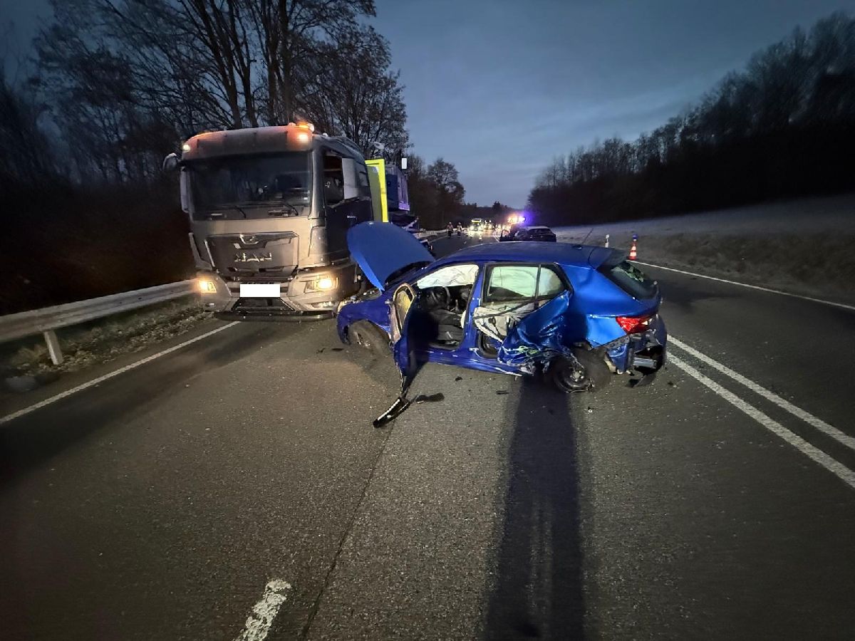 | Kurzbericht: | Beim Eintreffen waren keine Personen mehr im Transporter. Die Feuerwehr übernahm das Batteriemanagement und Absicherungsmaßnahmen an der Einsatzstelle. Im Verlauf des Einsatzes musste die B41 vollständig gesperrt werden. |