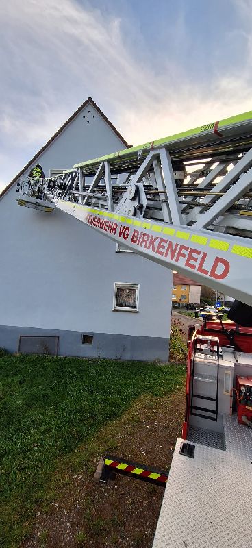 | Kurzbericht: | Die Feuerwehr Birkenfeld unterstützte den ARB mit der DLK beim kehren des Kamins. |