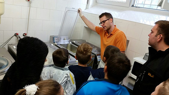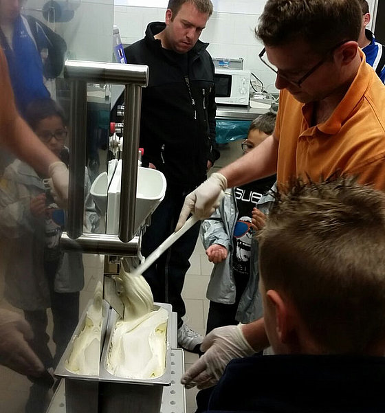 Die Bambinis besuchten das Eiscafe Venezia und bekamen einen Einblick in die Eisherstellung. Marco Vazzola zeigte in der Eisküche wie das Eis gemacht wird und wie die verschiedenen Sorten entstehen. Im Anschluss durften die Kinder dann auch das Ergebnis probieren.